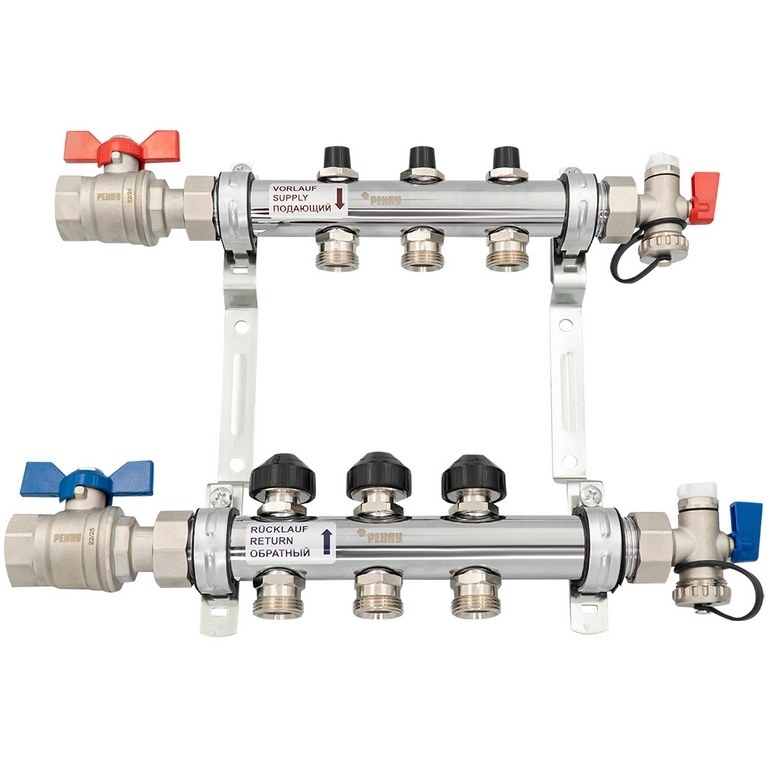 Коллектор для радиаторного отопления РЕХАУ HKV изготавливается из нержавеющей стали и предназначен для систем 2-контурного радиаторного отопления. Снабжён вентильными