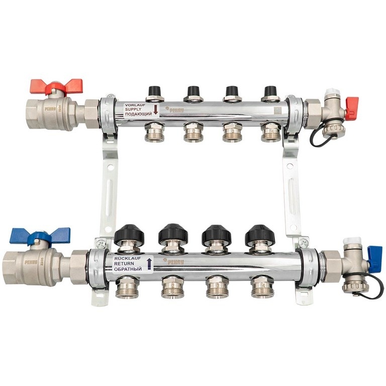 Коллектор для радиаторного отопления РЕХАУ HKV изготавливается из нержавеющей стали и предназначен для систем 2-контурного радиаторного отопления. Снабжён вентильными