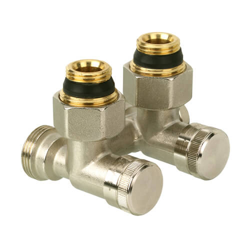 ческого обслуживания без опорожнения всей системы отопления. Для дренажа отдельного отопительного прибора на клапан Danfoss RLV-K (003L0282) надевается специальный спускной кран. Клапаны изготавливаются из латуни с никелевым покрытием в прямом и угловом исполнении.С помощью специальных переходников может присоединяться к штуцерам отопительного прибора с внутренней резьбой G ½ или наружной резьбой G ¾ A. Переходники являются само уплотняющи мися. Поставляются с завода настроенные для применения в двухтруб ной системе отопления. Переключение клапана для работы в однотрубной системе производится простым враще нием затвора байпаса.