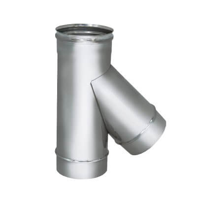 Тройник 45° необходим при заднем подключении котлов, печей; в случае, когда необходимо, чтобы труба не опиралась на котёл, печь; в случае подключения второго нагревательного прибора к дымоходу.