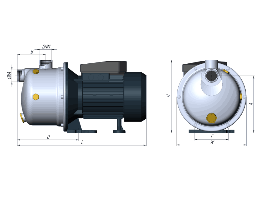 Модель Габаритные размеры A B C D DNA DNM